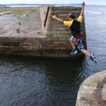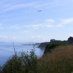 DO 23.7. von STONEHAVEN (hübsches Städtchen) – DUNNOTTAR-CASTLE (Eintritt ins Burggelände 5,– Pfd. pro Person) – MONTROSE – über die TAY-BRIDGE bei DUNDEE ( 1,4 Meilen lang = ca. 2 km) St. ANDREWS 17. Nächtigung Stellplatz zwischen KINGSBARNS und KILMINNING (am Meer) – Abendspazierung – alle nass geworden. Regen die ganze Nacht über.